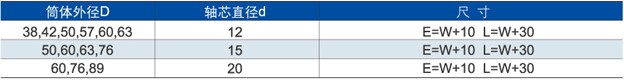 Tube  D                                Shaft d                                                          Size